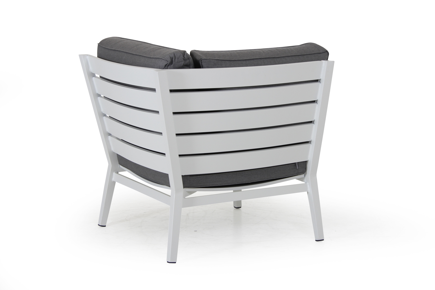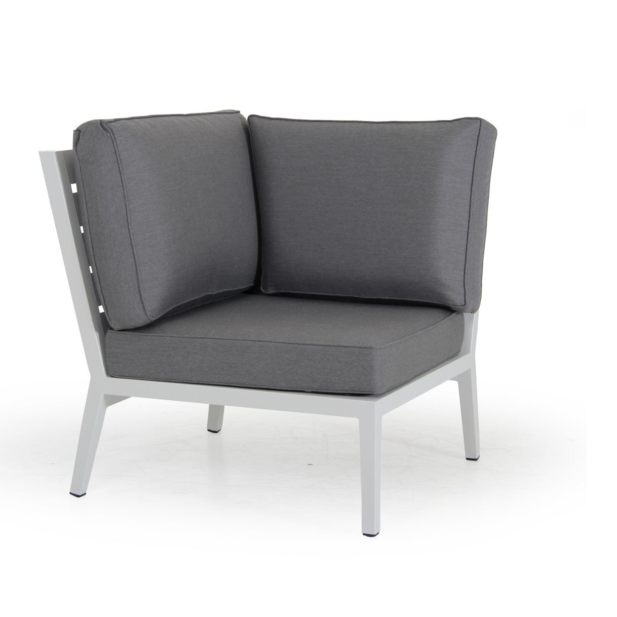 Угловой модуль brafab biarritz, садовая мебель. Серия мебели Biarritz нашла себя в идеальной комбинации со столиками Chelles, образуя прекрасную группу как на террасе, так в домашних помещениях. Стильный, практичный ассортимент журнальных столиков из матового белого и черного алюминия. Подушки из светло-серой олефиновой ткани. Размер, см 83 Х 83 Х 87 Материал каркаса Всепогодный алюминий Материал изделия Текстилен Страна бренда Швеция Цвет Серый / Белый