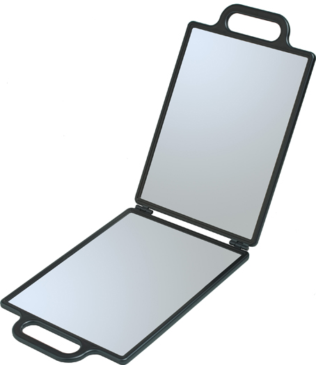 Лёгкое и удобное складное парикмахерское зеркало с 2 ручками , для демонстрации клиенту стрижки, или прически на затылочной части головы. - Изготовлено из пластика и стекла
