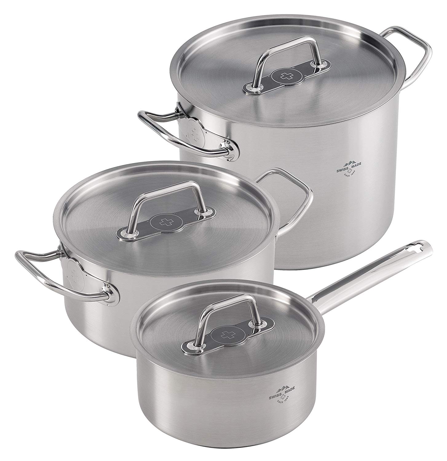 Набор 3 предмета 1,5л/3л/6л montreux kuhn rikon. Бренд: Kuhn Rikon Описание: Многослойное дно Superthermic® высотой 0,8 см обеспечивает быстрое и равномерное распределение тепла. Подходит для всех видов варочных панелей. Эргономичные не нагревающиеся ручки из нержавеющей стали. Практичная внутренняя измерительная шкала. Современный дизайн. Моется в посудомоечной машине. Пригодно для использования в духовом шкафу. 1 ковш , 16 см, 1. 5 л 1 кастрюля, 20 см, 3 л 1 кастрюля, 24 см, 6 л