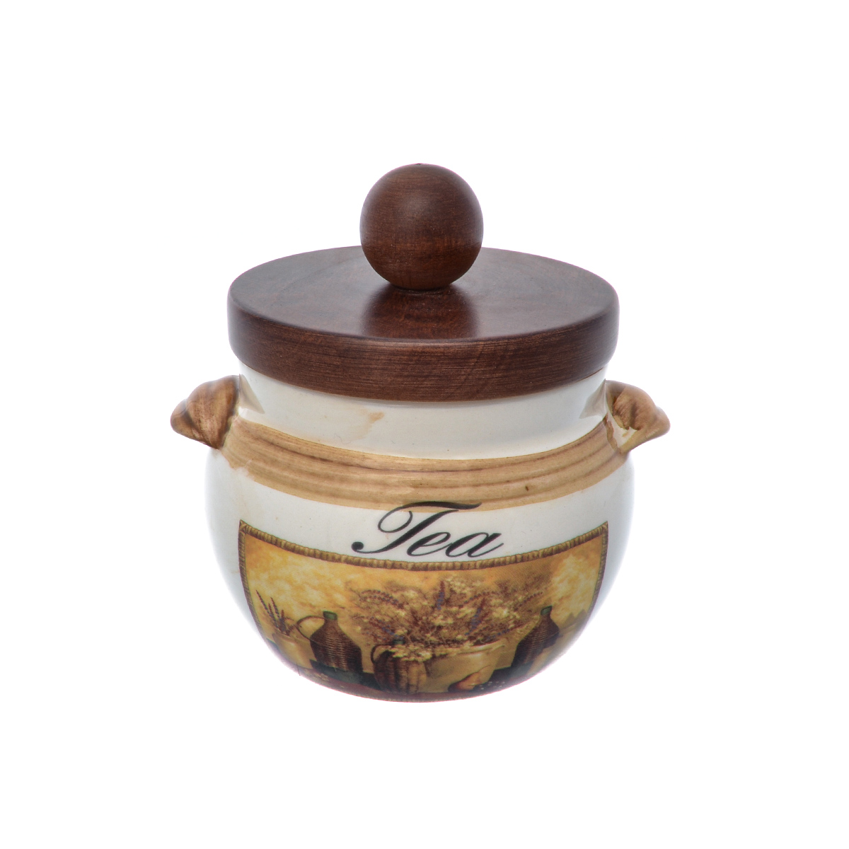 Банка для чая с деревянной крышкой натюрморт диаметр 9 см, высота 9 см
