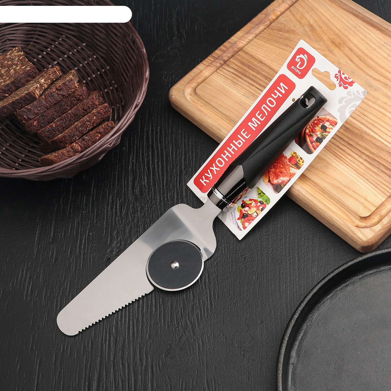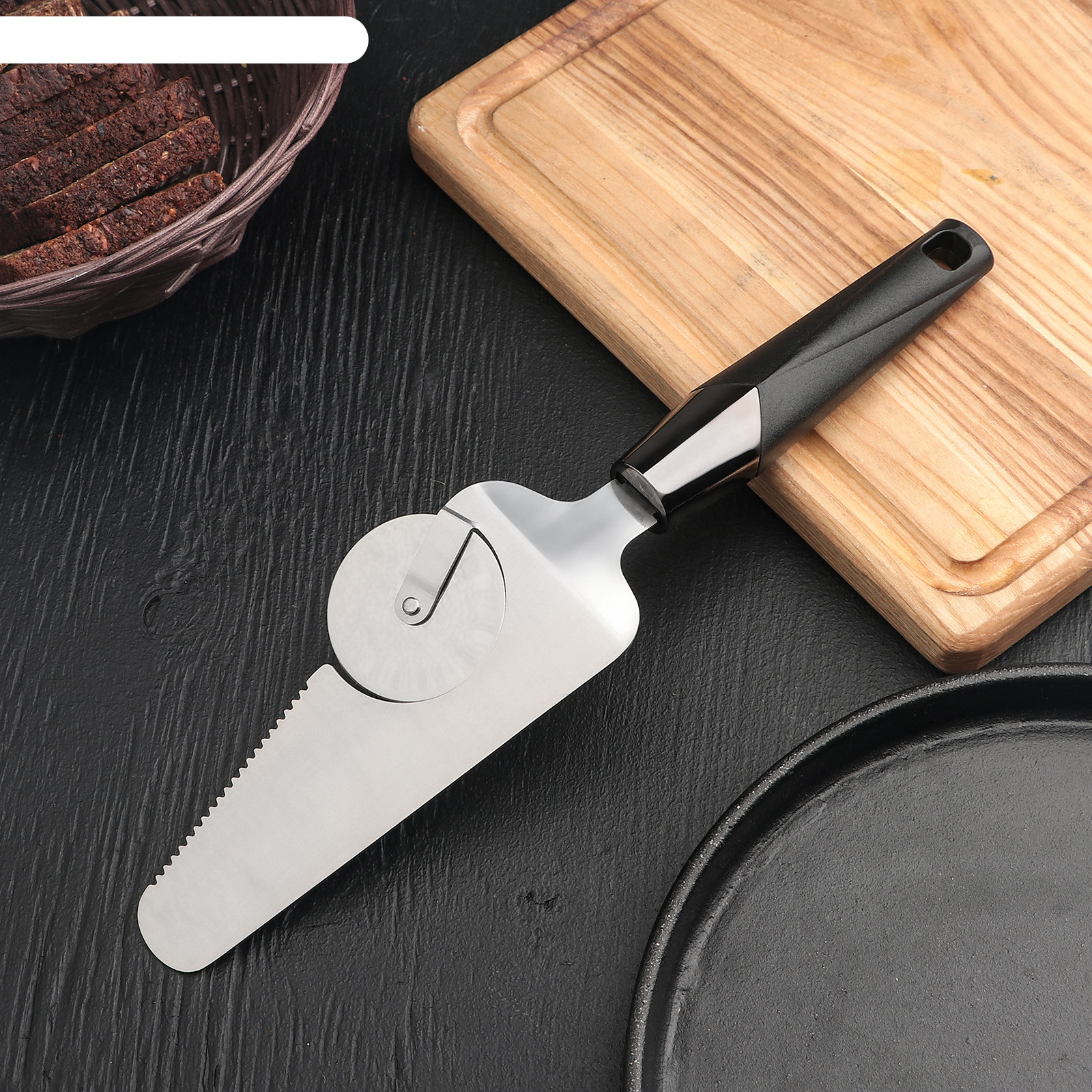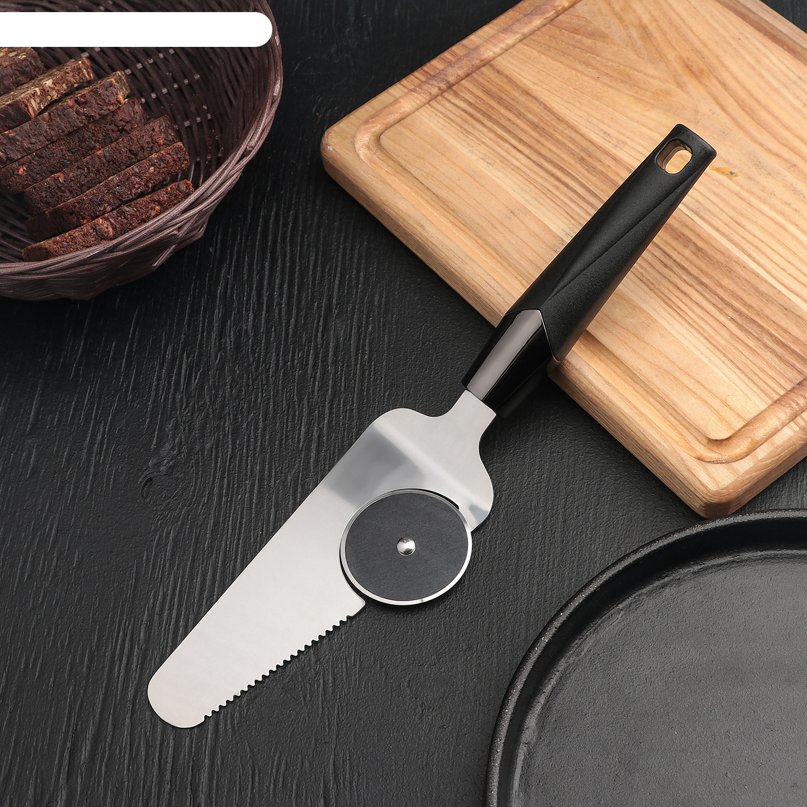 Нож-лопатка для пиццы хром, 29х6,5 см, цвет черный