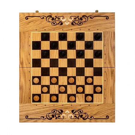 Шахматы + шашки + нарды 45мм, с фигурами, дуб