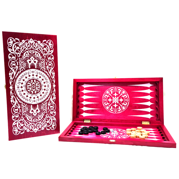 Нарды средние малиновые, рисунок серебро винтаж (480*240*40)