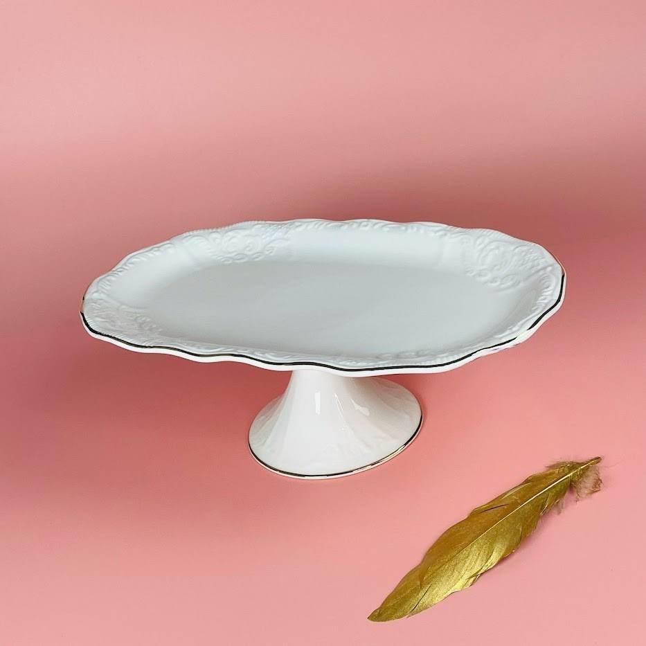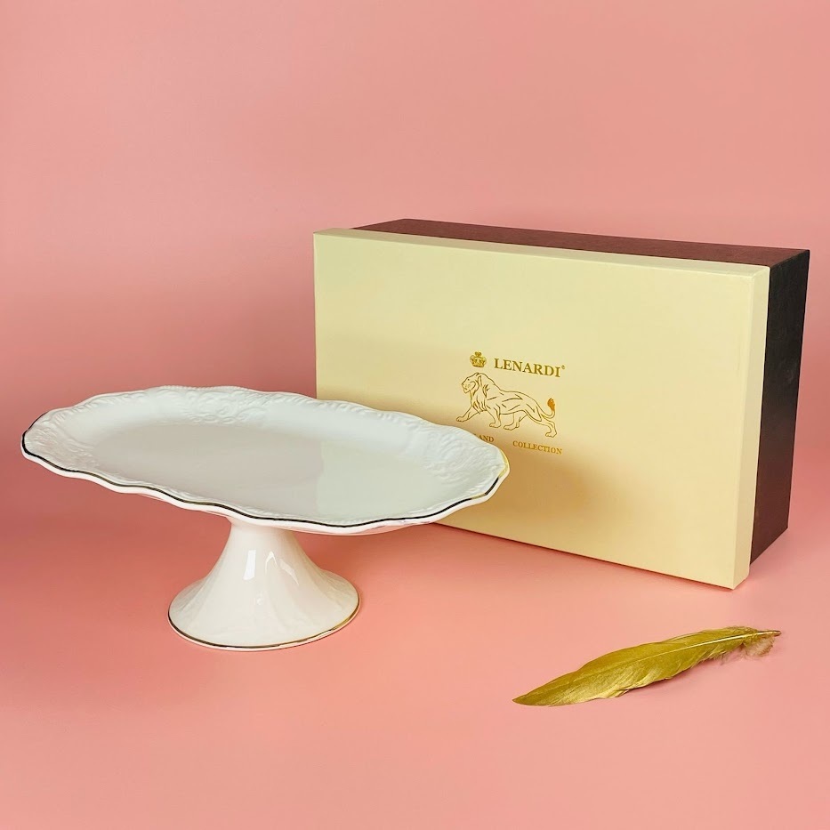 Овальное блюдо 30,5см на ножке агата в под.уп. фарфор.
