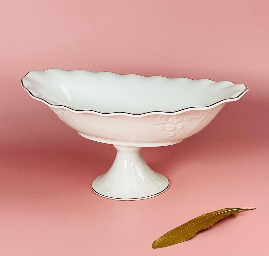 Овальная фруктовница 34см на ножке агата в под.уп. фарфор