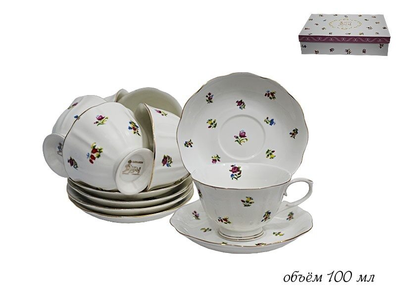 Кофейный набор 12пр. 100 мл полевые цветы в подарочной упаковке фарфор Lenardi
