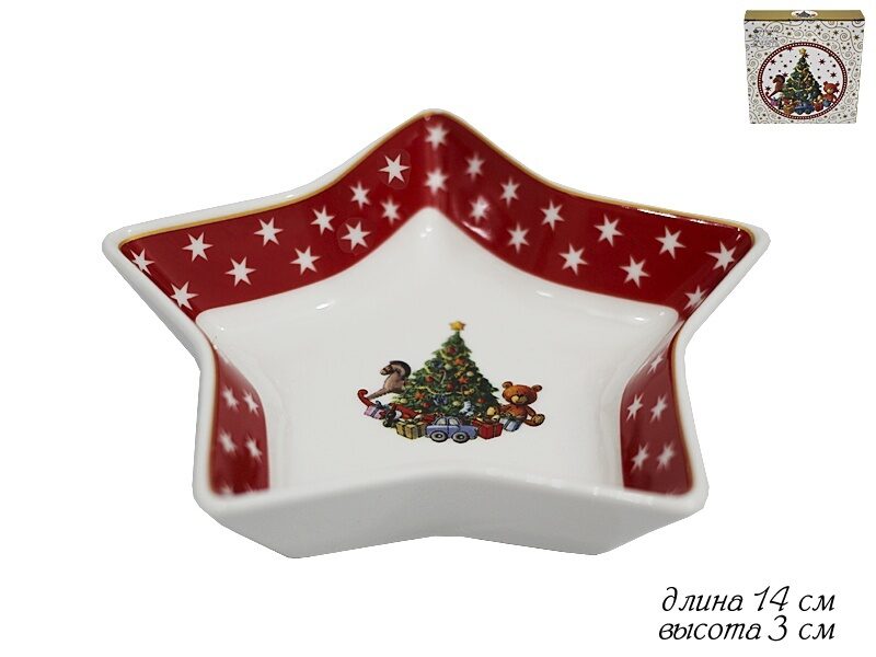 Блюдо 14см новый год в подарочной упаковке фарфор Lenardi