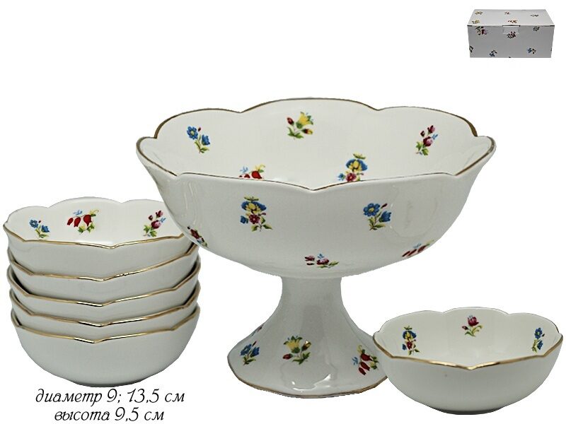 Набор для варенья креманка 13,5 см и 6 розеток 9 см полевые цветы в под.уп