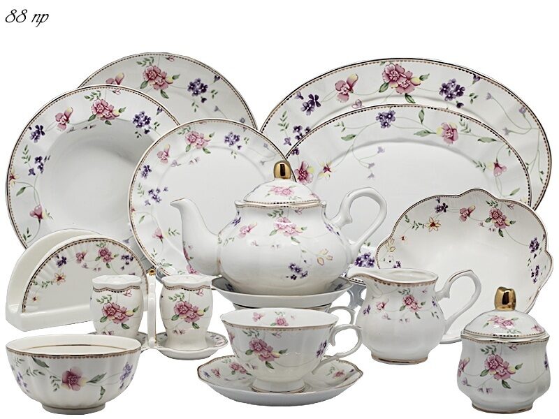 Чайно-столовый сервиз 88пр. флоренс в подарочной упаковке фарфор Lenardi