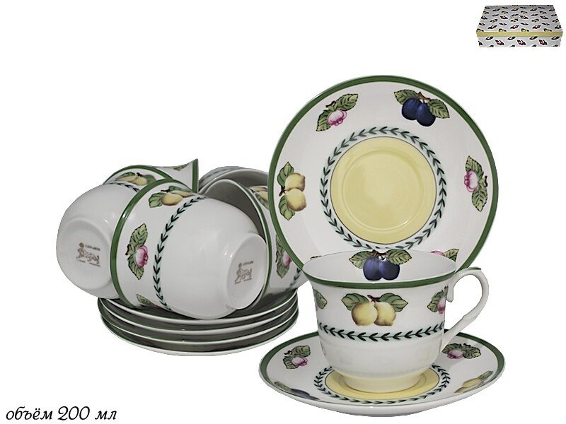 Чайный набор на 6 персон 12 предметов фрукты в подарочной упаковке фарфор Lenardi