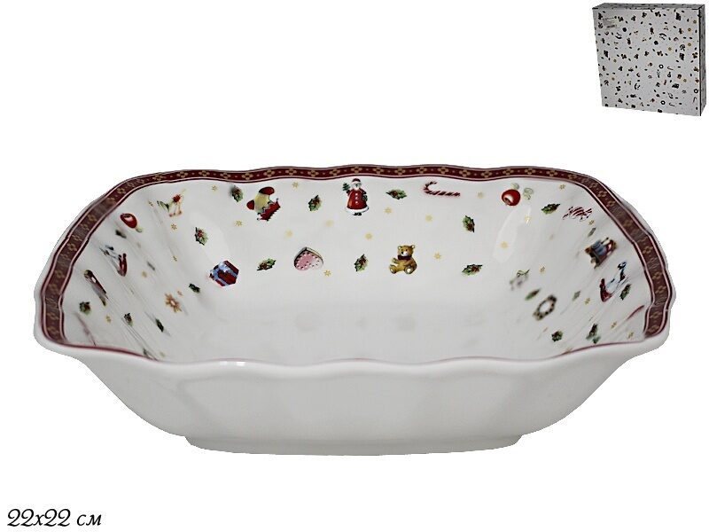 Квадратный салатник 22см. новый год в подарочной упаковке фарфор Lenardi