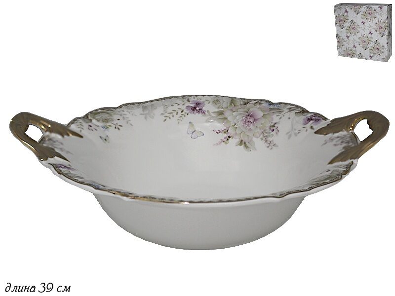 Салатник с ручками 30см. хризантемы с ручками в подарочной упаковке фарфор Lenardi