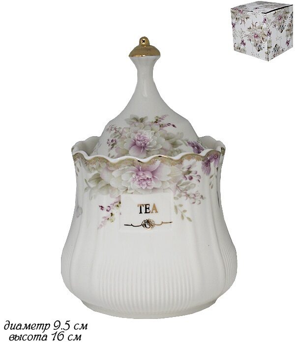 Банка с крышкой 16см, 450 мл хризантемы в подарочной упаковке фарфор lenardi.