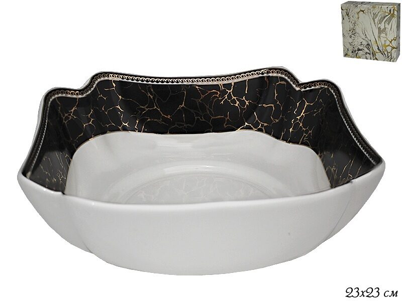 Квадратный салатник 23см мрамор в подарочной упаковке lenardi.