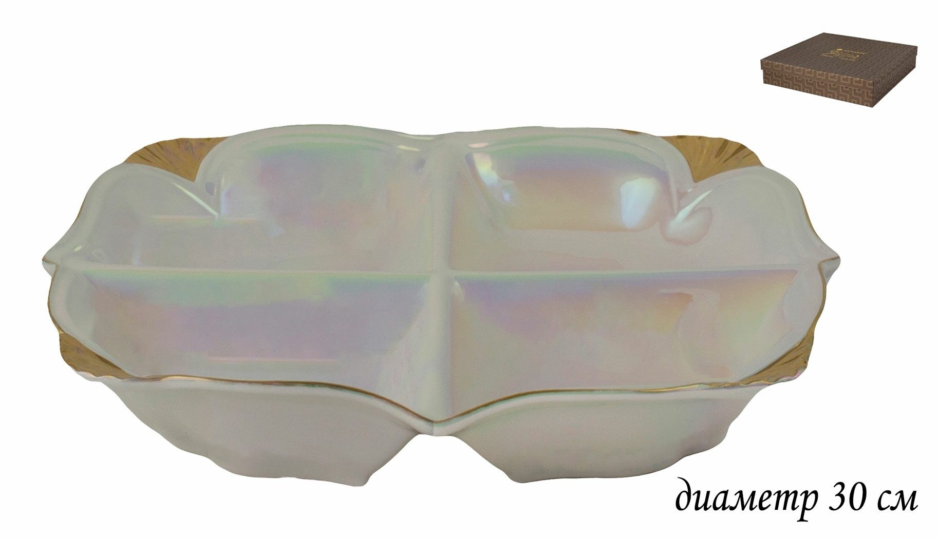Менажница 4 секции 30 см фарфоровая Lenardi перламутр, блюдо сервировочное