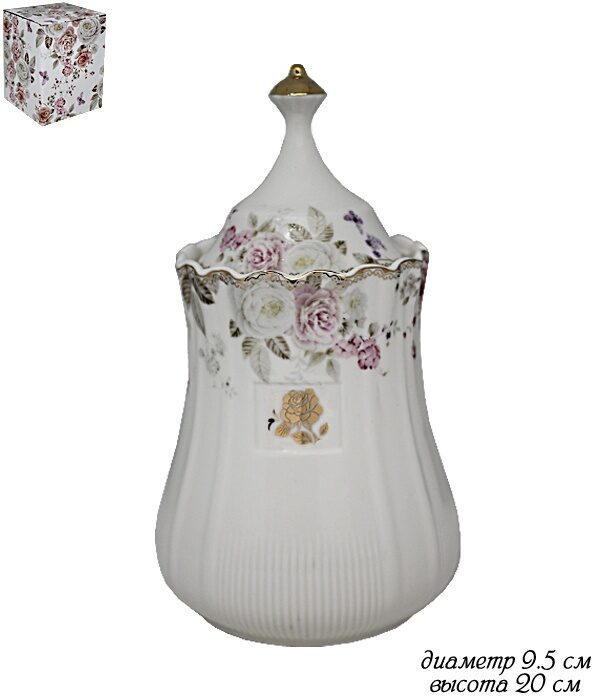 Банка с крышкой 20 см пионы в подарочной упаковке фарфор Lenardi