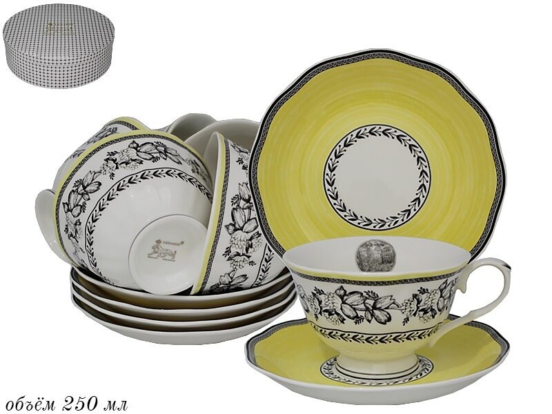 Чайный набор на 6 персон 12 предметов 250 мл Provence в подарочной упаковке фарфор Lenardi