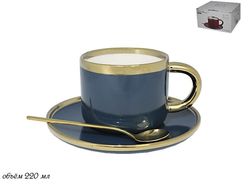 Чашка 220 мл с блюдцем и ложкой в под.уп.