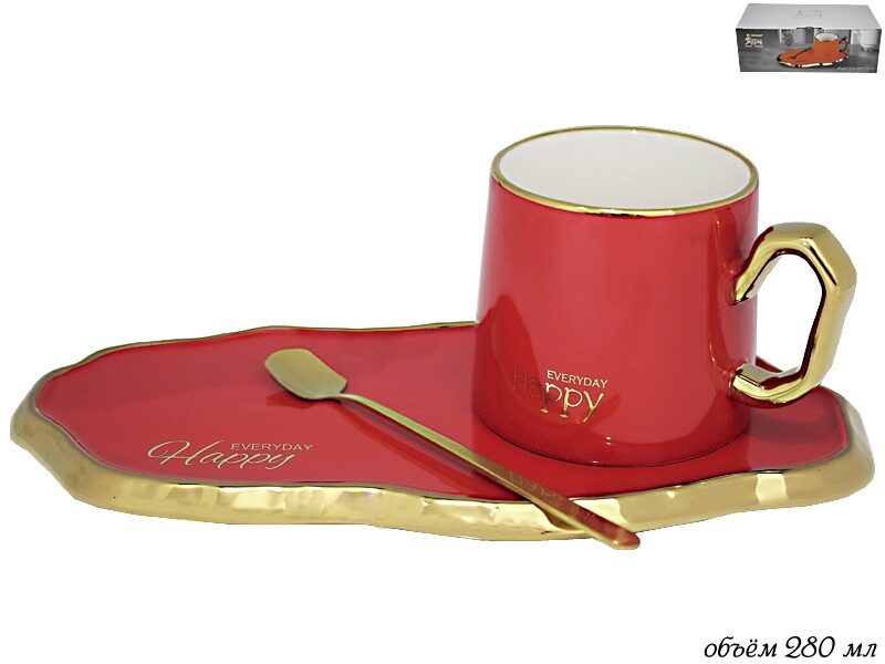 Чашка 280 мл с блюдцем и ложкой в под.уп.