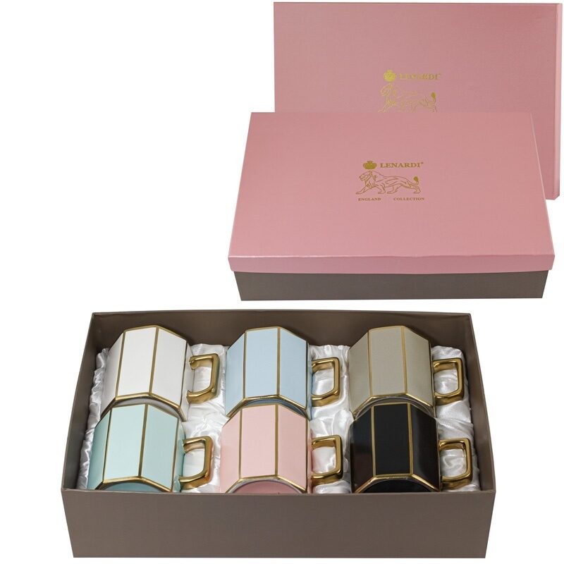 Набор из 6 кружек 300 мл в подарочной упаковке фарфор Lenardi