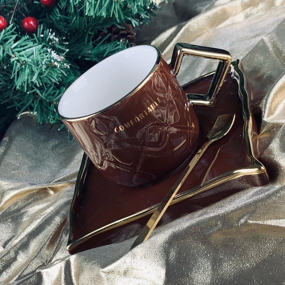 Чашка 210 мл с блюдцем и ложкой в подарочной упаковке фарфор Lenardi