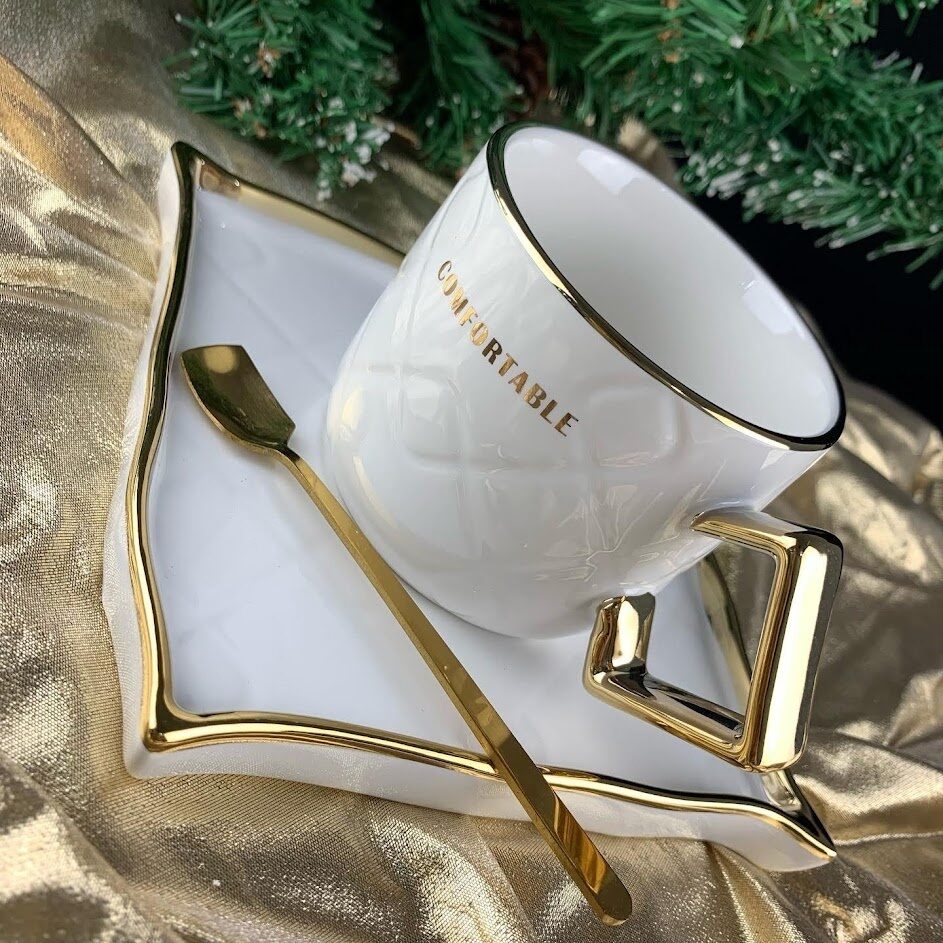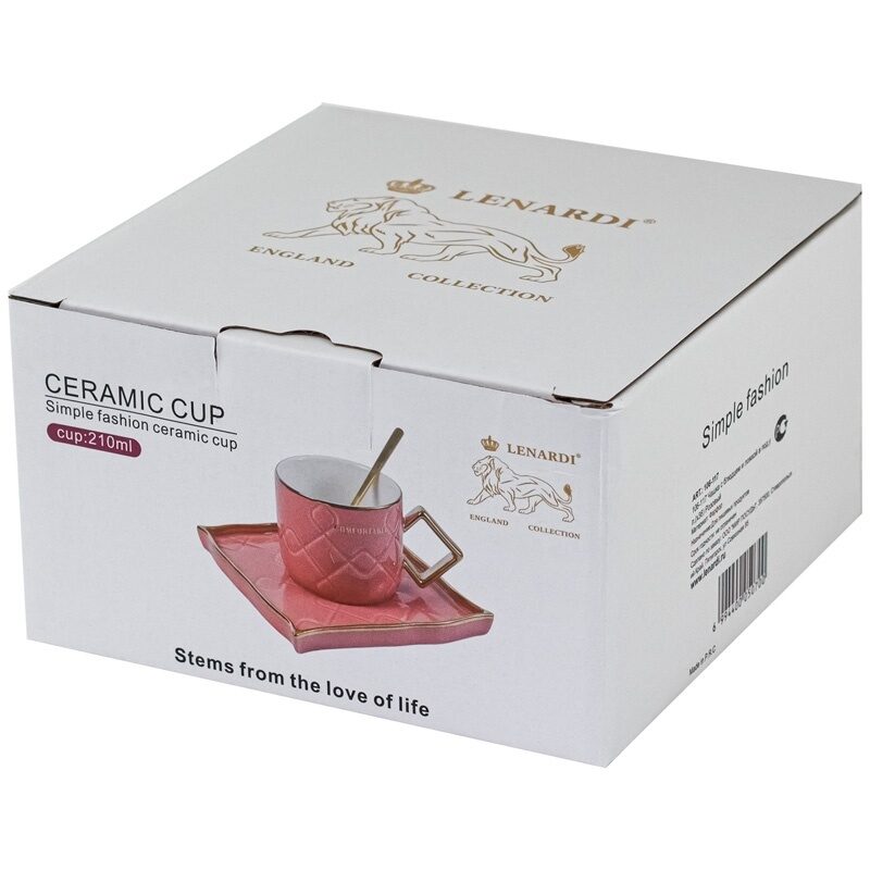 Чашка 210 мл с блюдцем и ложкой в подарочной упаковке фарфор Lenardi