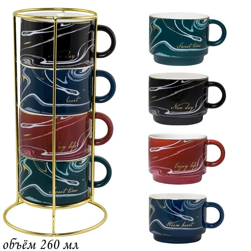 Набор из 4 кружек 260 мл на подставке в под.уп. фарфор.