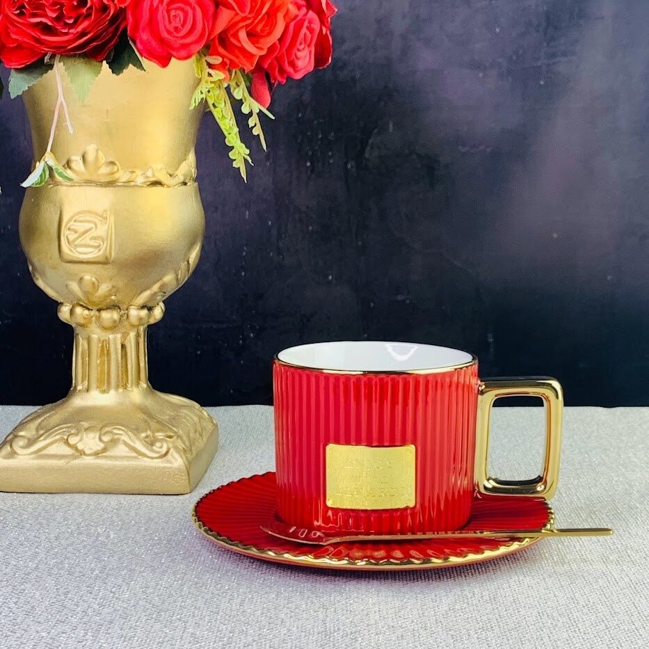Чашка 250 мл с блюцем и ложкой в подарочной упаковке фарфор Lenardi