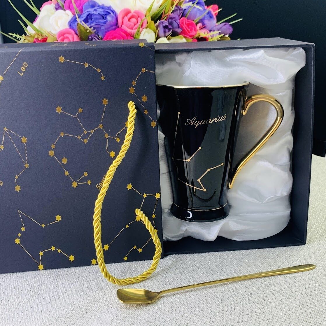 Кружка 390мл. с ложкой в подарочной упаковке водолей фарфор Lenardi
