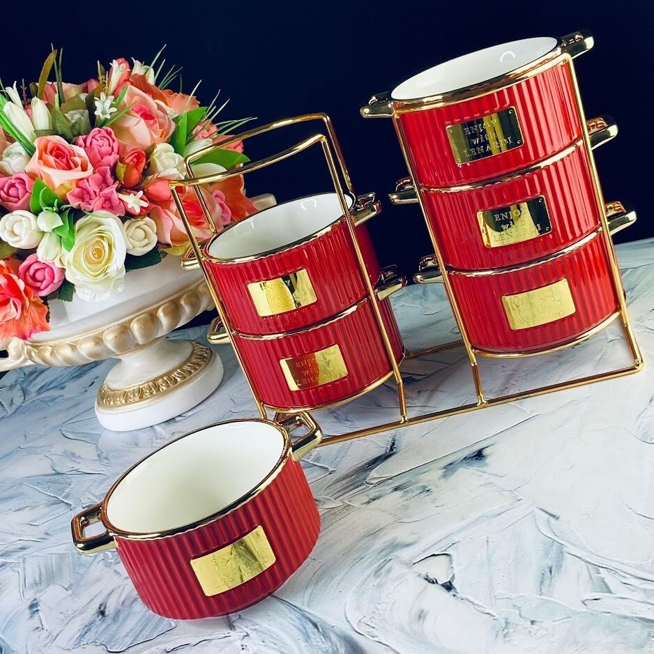 Набор из 6 бульонниц 500мл Multicolor на подставке в под.уп. фарфор