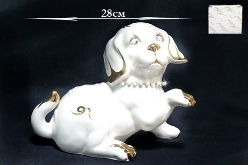 Статуэтка собака 28см. в подарочной упаковке фарфор Lenardi