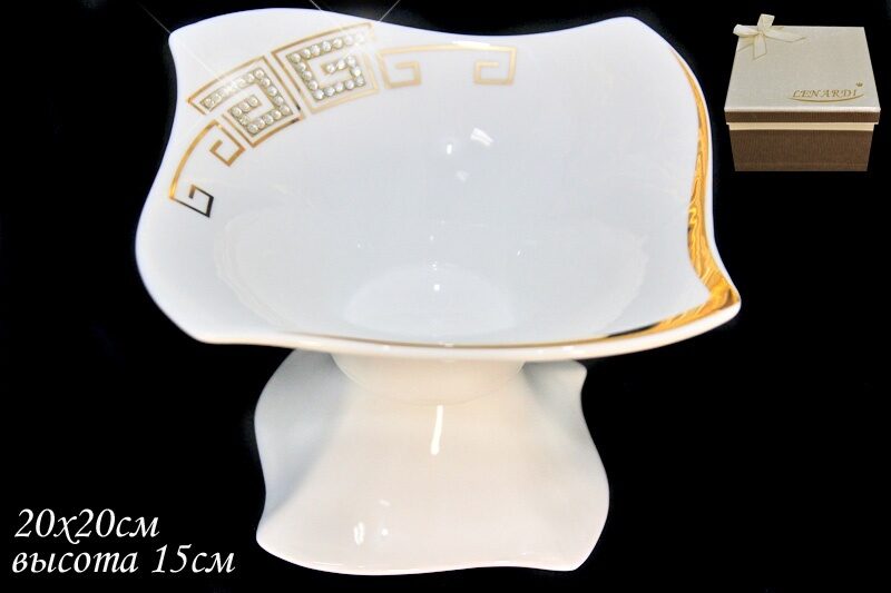 Салатник 20см. на ножке Givenchi Gold в подарочной упаковке фарфор Lenardi