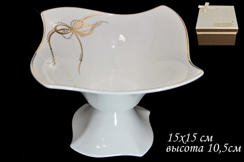 Конфетница 15см. лента в стразах в подарочной упаковке фарфор Lenardi