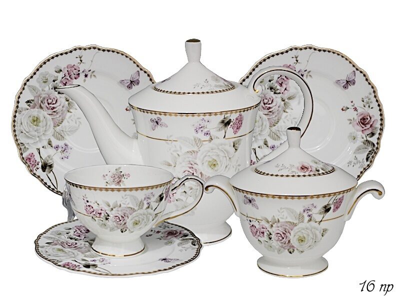 Чайный сервиз 16пр.200 мл пионы в подарочной упаковке фарфор Lenardi