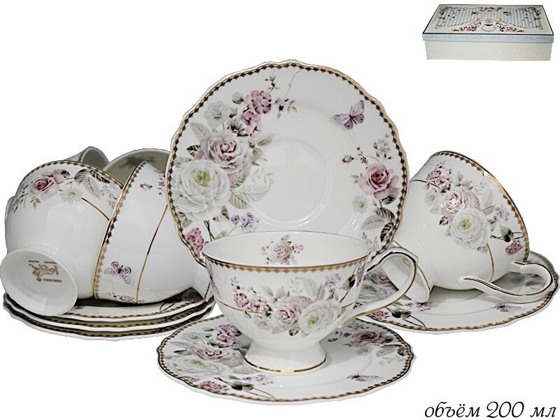 Чайный набор 12пр., 200 мл пионы в под.уп. фарфор