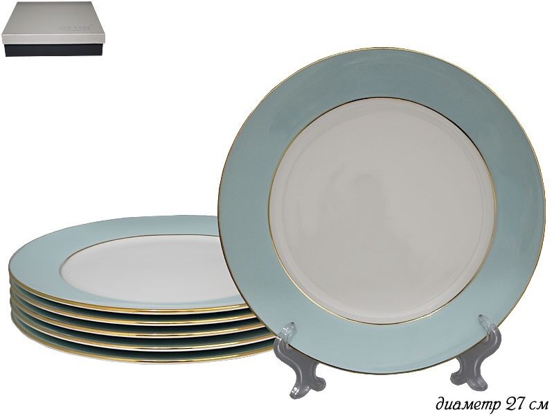Тарелка сервировочная обеденная 27 см Lenardi Blue, фарфор, столовые мелкая, закусочная, 1 шт