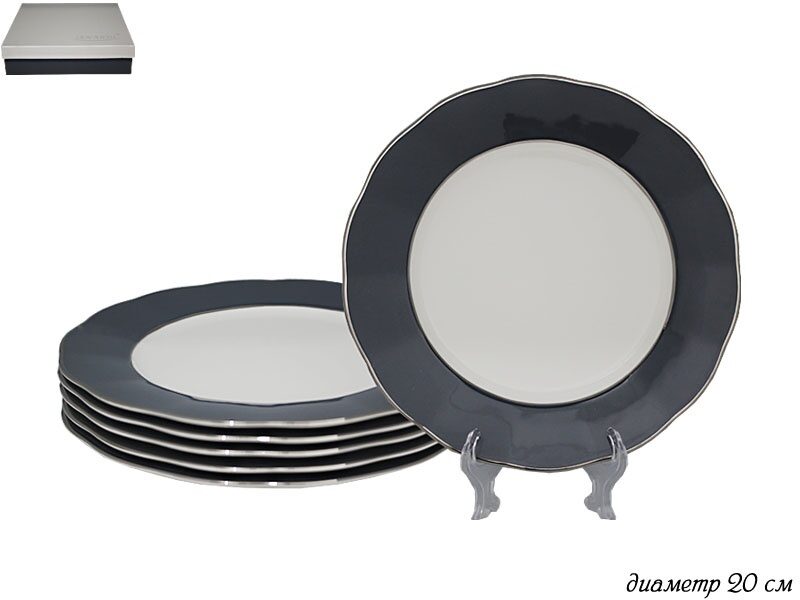 Тарелка десертная обеденная 20 см Lenardi Gray, фарфор, мелкая закусочная, 1 шт