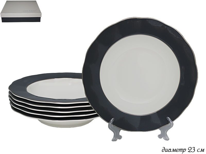 Набор из 6 глубоких тарелок 23см. Gray в подарочной упаковке фарфор Lenardi