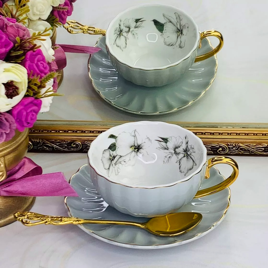 Чайная пара Lenardi орхидея серая 250 мл фарфор