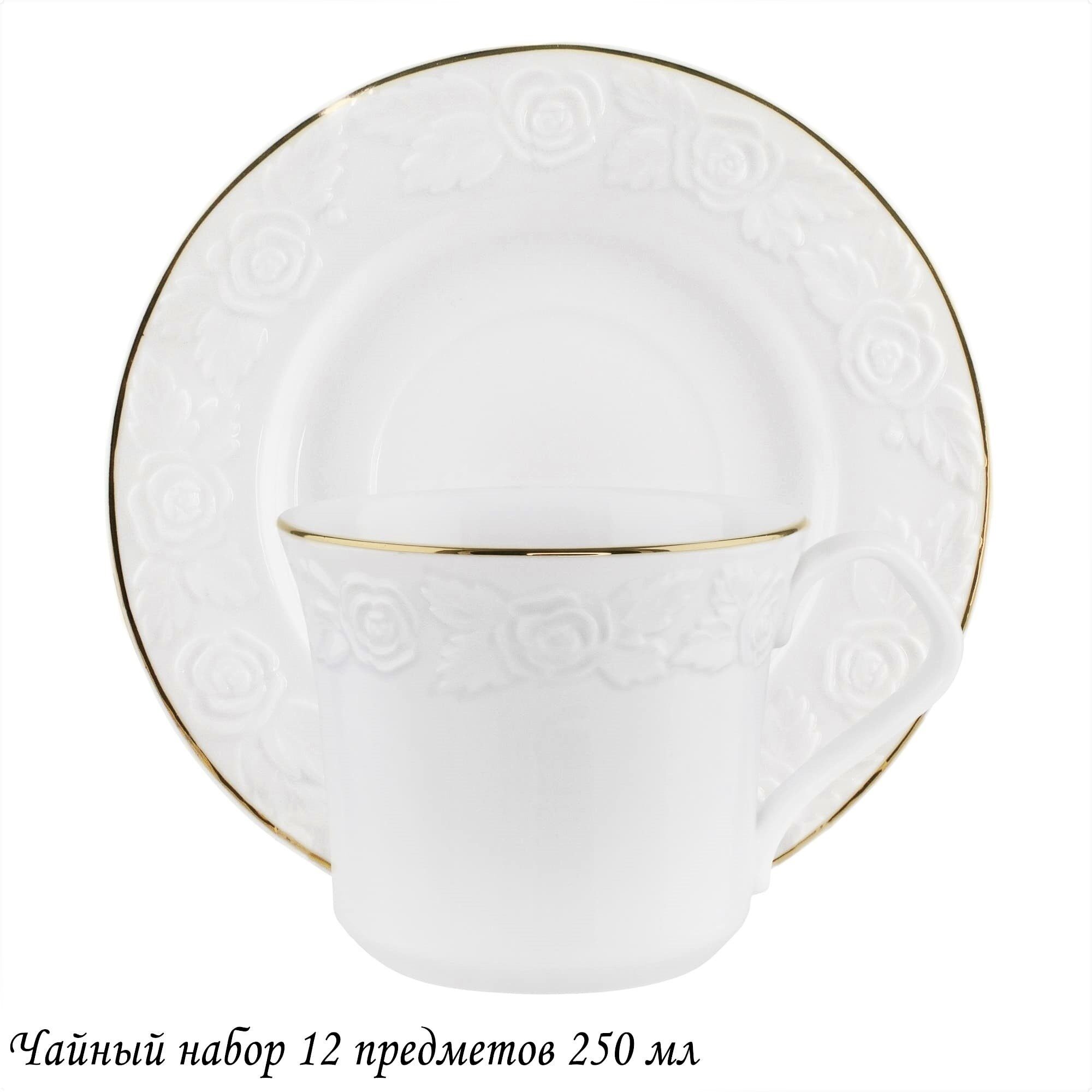 Чайный набор 12пр. 250 мл белая роза в под.уп. фарфор