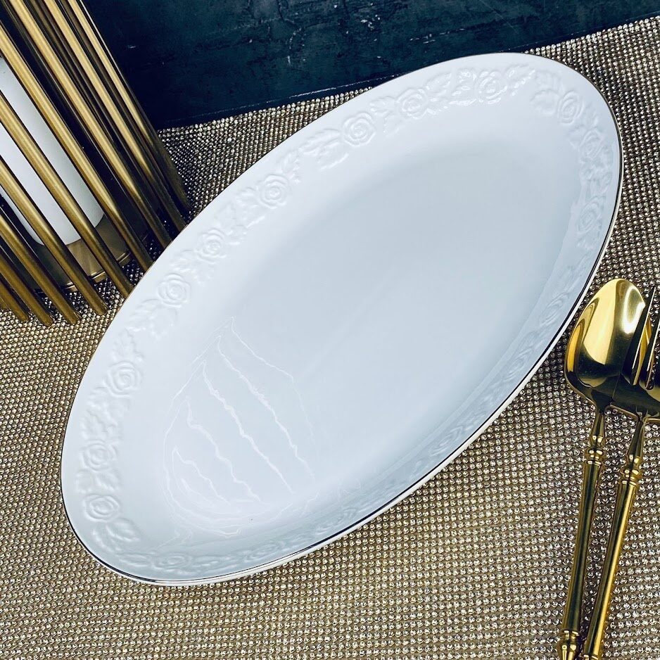Овальное блюдо 36см белая роза в под.уп. фарфор
