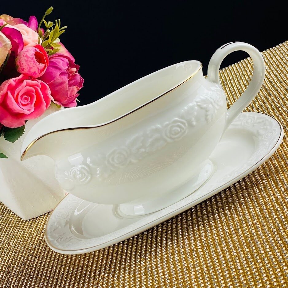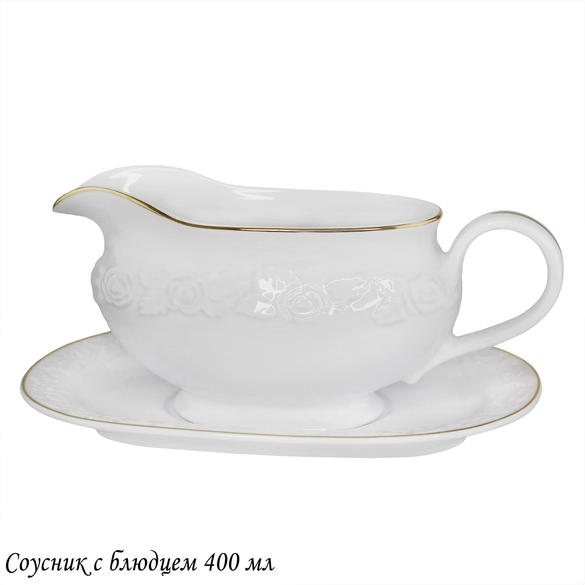Соусник 400 мл с блюдцем белая роза в под.уп. фарфор
