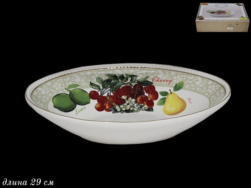 Овальный салатник 29см фрукты в подарочной упаковке Lenardi