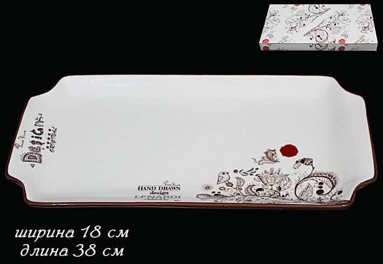 Прямоугольное блюдо 37,5х18х2 см птичий дворик в подарочной упаковке Lenardi