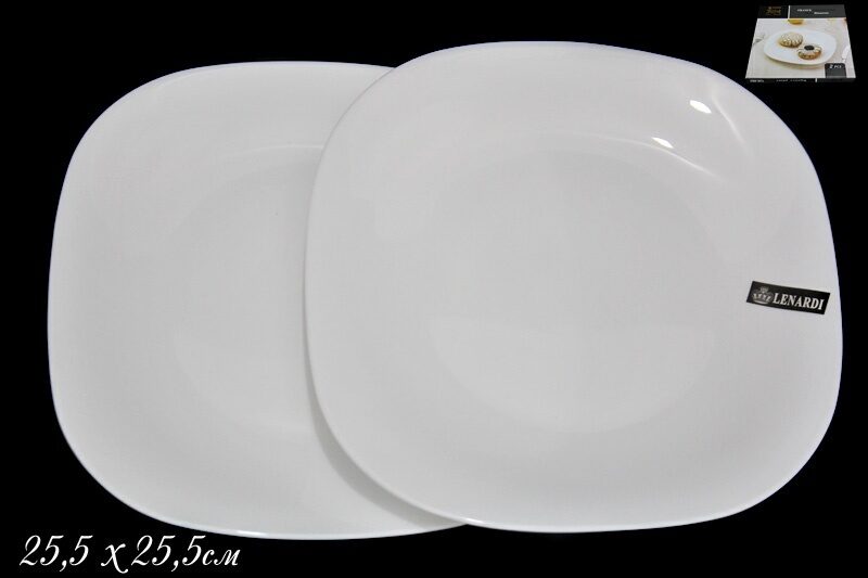 Набор из 2х квадратных тарелок 25,5см White в подарочной упаковке опаловое стекло Lenardi