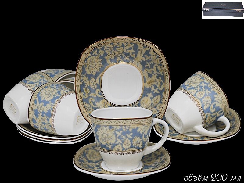 Чайный набор на 6 персон 12 предметов в подарочной упаковке опаловое стекло Lenardi