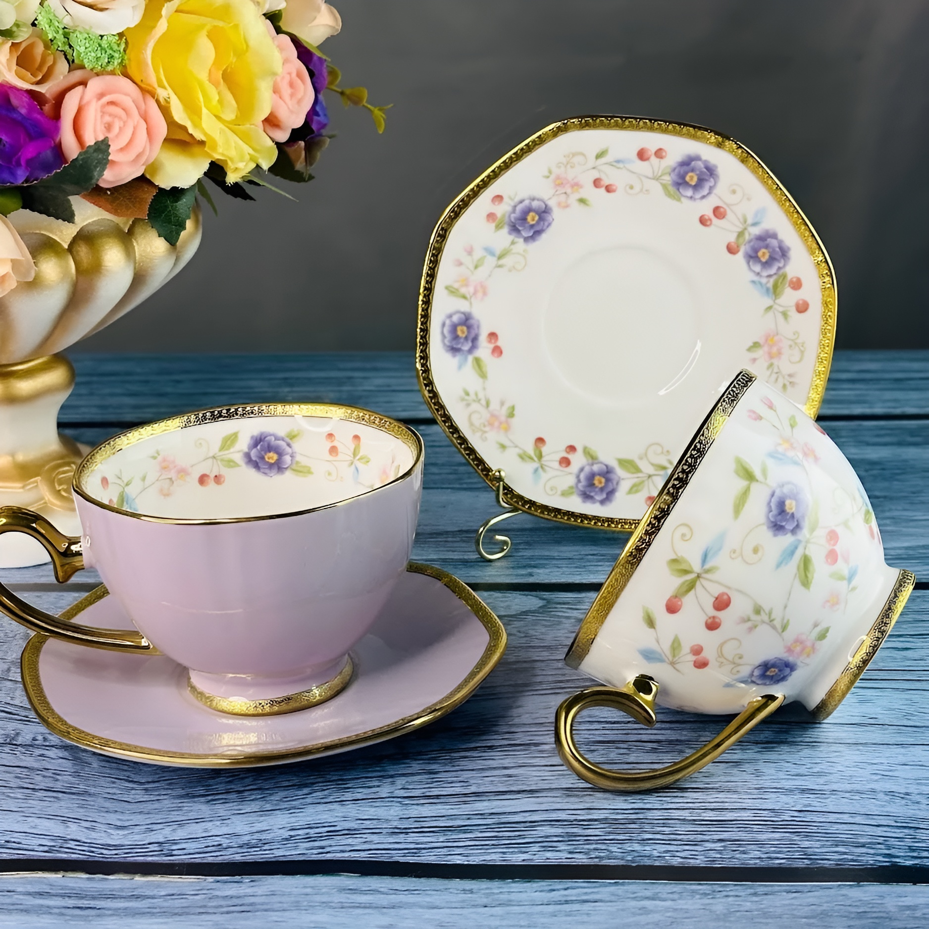 Чайный набор на 6 персон 12 предметов Lenardi 6 шт чашек и блюдец 260 мл в подарочной упаковке фарфор