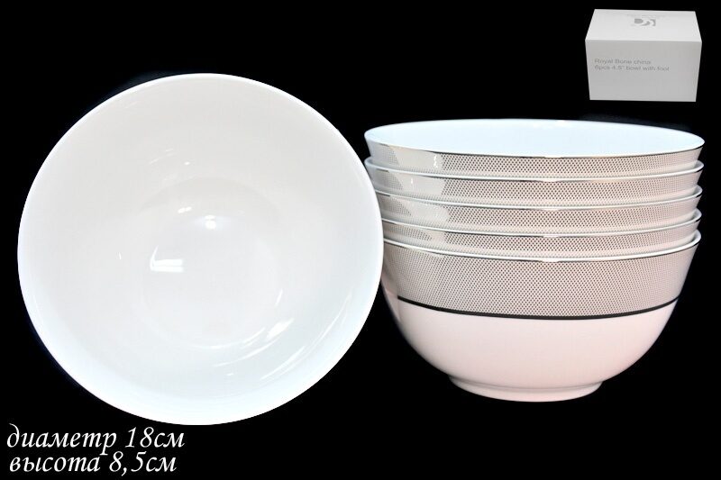 Набор из 6 салатников 18см. серебряная симфов подарочной упаковке костяной фарфор Lenardi
