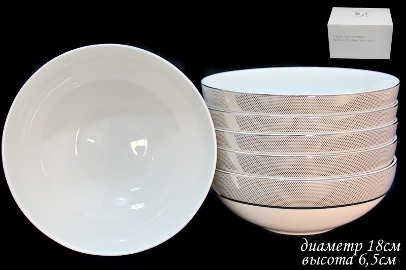 Набор из 6 салатников 18см. серебряная симфония в подарочной упаковке костяной фарфор Lenardi