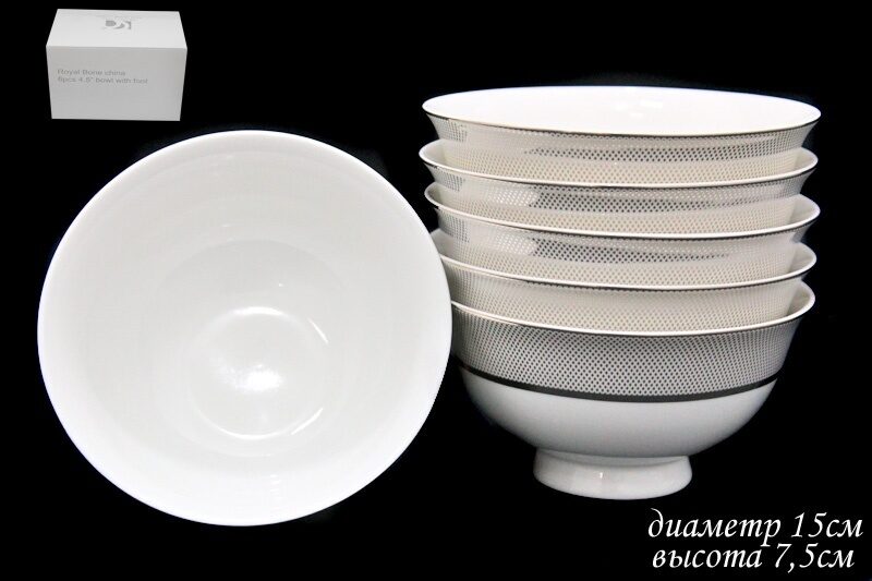 Набор из 6 салатников 15см. серебряная симфония в подарочной упаковке костяной фарфор Lenardi